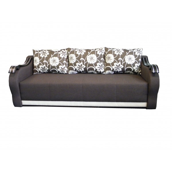 Nowoczesna kanapa na sprężynach typu bonell. Po rozłożeniu zamienia się w duże, wygodne łóżko. Powierzchnia spania 140x190. Boczek ozdobiony jest drewnem. Kolor drewna oraz materiał można dobrać według własnych upodobań.