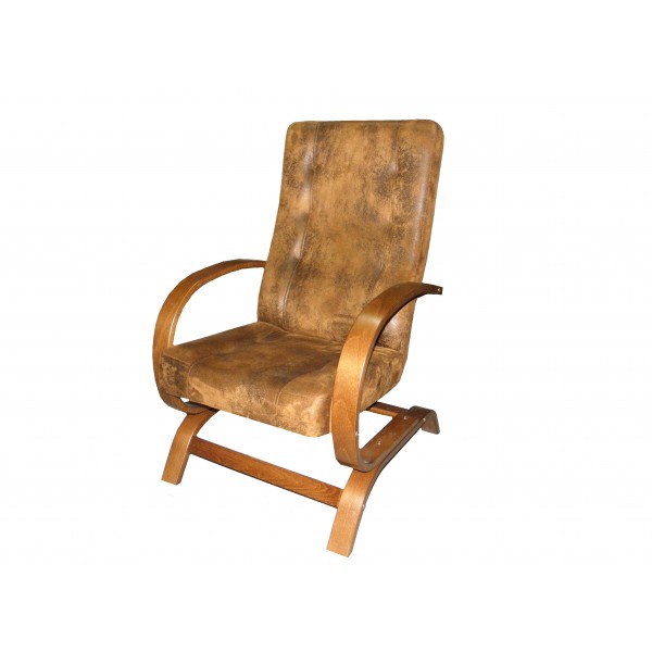 Lekki fotel na drewnianych lakierowanych płozach, możliwość wyboru materiału i koloru drewna. Możliwość dokupienia kanapy wykonanej w takiej samej tkaninie.