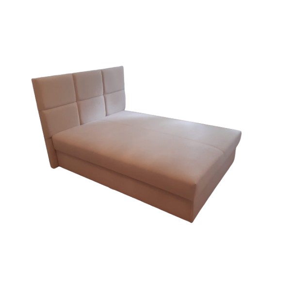 Łóżko sypialniane wykonane z materiału obiciowego dobrej jakości.