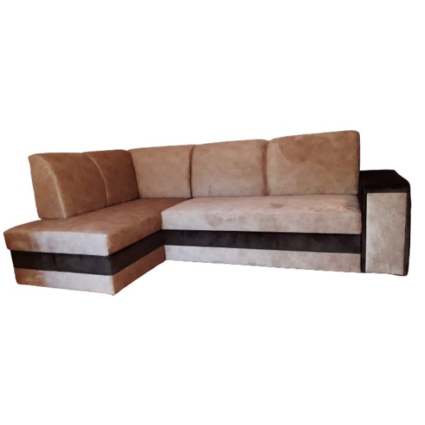 Nowoczesny narożnik z funkcją spania i pojemnikiem na pościel. Wykonany na sprężynie bonnelowej. W boczku wysuwana szuflada.