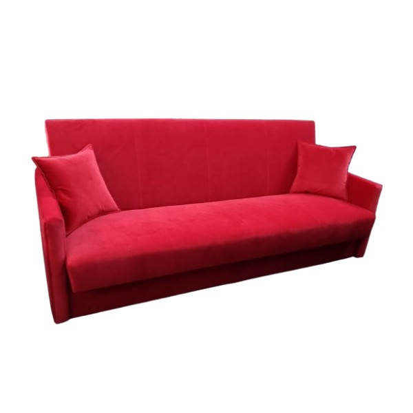 Prosta kanapa na sprężynach typu bonell z kwadratowymi boczkami bez żadnych ozdób.